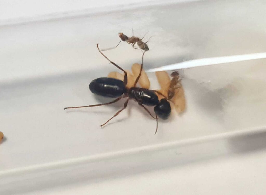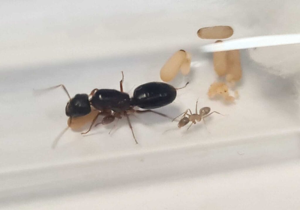 Color: Formica sanguinea stands out with its distinctive coloration. The black abdomen contrasting against the striking orange hue on its back creates a visually captivating ant species that will be the talk of any ant-keeping community.