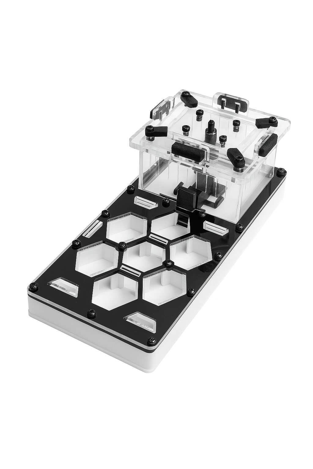 - 1 Otwór na wężyk ⌀ 12 mm – gotowe do podłączenia z probówką lub kolejnym modułem (na arenie oraz ze strony gniazda)